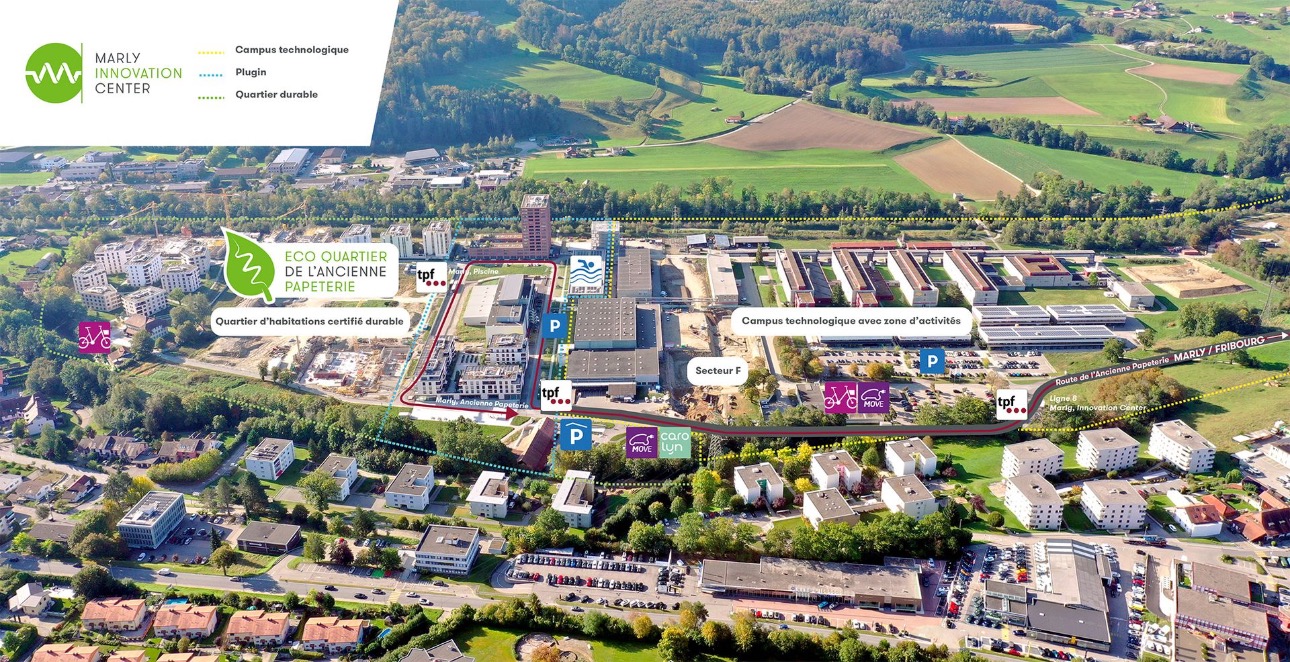 La construction de l’éco-quartier a commencé fin 2019 sur le site de l’ancienne papeterie, situé entre le Marly Innovation Center (MIC) et le centre villageois de Marly dans le canton de Fribourg. Le projet couvre environ 13,5 hectares et porte une démarche durable labellisée One Planet Living et SEED (premier éco-quartier de ce type dans le canton de Fribourg), il est développé et sera livré en 3 phases,