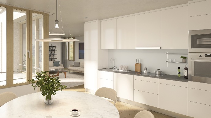 Architecture inspirée du bâti vaudois, forte qualité paysagère, logements lumineux avec jardins, loggias ou terrasses, parking souterrain, et solutions énergétiques durables (Minergie®, géothermie, photovoltaïque).