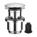 Bonde soupape d'écoulement 1 1/4" Push open fonction 2 en 1 (AVA E INOX), appuyez pour ouvrir et fermer verrouillable en position ouverte, adapté aux lavabos avec ou sans trop-plein, ACIER INOXYDABLE BROSSÉ