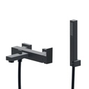 Mélangeur de bain complet ERGO-Q, E 150 mm, avec raccords excentriques 1/2 x 3/4, flexible 150 cm et douche à main y compris support pour douchette à main, noir mat