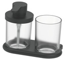 Distributeur de savon NIA et porte-verre, récipient 0,18 litre et verre en verre mat, Noir mat