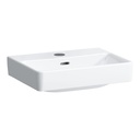 Lave-mains VAL 55 x 31,5 cm, SaphirCéramique tablette à gauche avec trop-plein, 1 trou à droite, standard, blanc