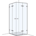 Entrée diagonale CINCO 70-100 x 70-100 cm, H 200 cm 2 portes pivotantes et 2 éléments fixes, sans cadre coude et charnières chrome profil contre l'éclaboussement MESURES EXACTES SELON PRISE DE MESURE, verre véritable clair, chromé brillant