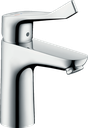 Mélangeur de lavabo FOCUS CARE 100, S 119 mm, goulot fixe longueur du levier 121 mm eau froide en position centrale, sans vidage, débit 5 l/min, groupe acoustique I , Chromé