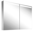 Armoire de toilette ARANGA (anc. ARANGALINE TW) 100 x 70 x 12 cm profil en aluminium pour montage AP ou UP, prises double en haut à droite ou à gauche, prise double en bas à la paroi intermédiaire à droite, 2 portes à double miroir, LED dimmable, en haut et en bas 39 W, dessus et dessous séparément commutable 2000-6500 K, bouton pour les fonctions à l'intérieur du profilé latéral, miroir grossissant IP44, argent éloxé